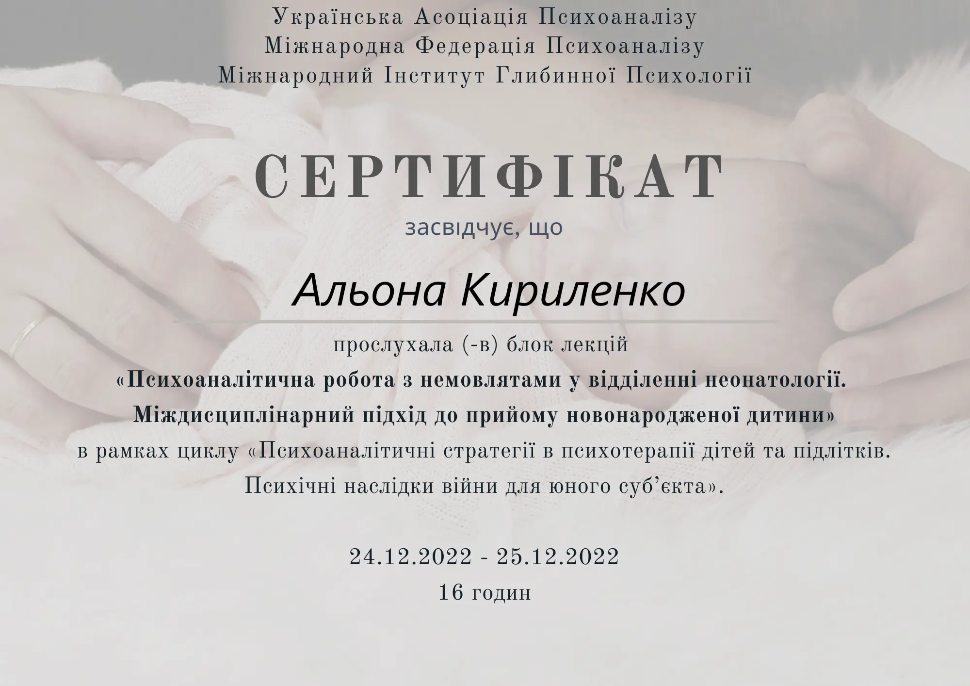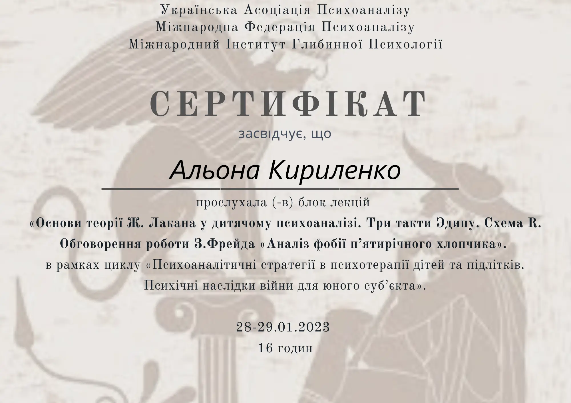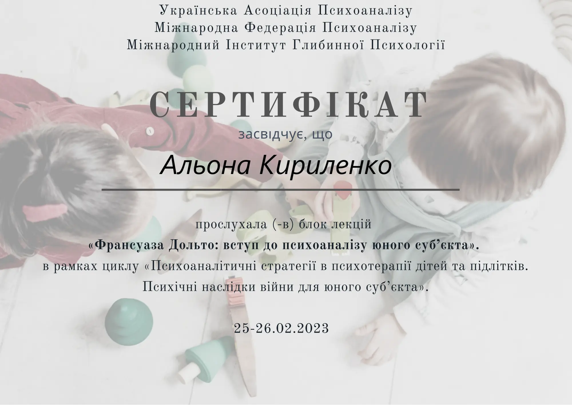 Клінічна спеціалізація «Психоаналітичні стратегії в психотерапії дітей та підлітків. Психічні наслідки війни для юного субʼєкту» (128 годин)