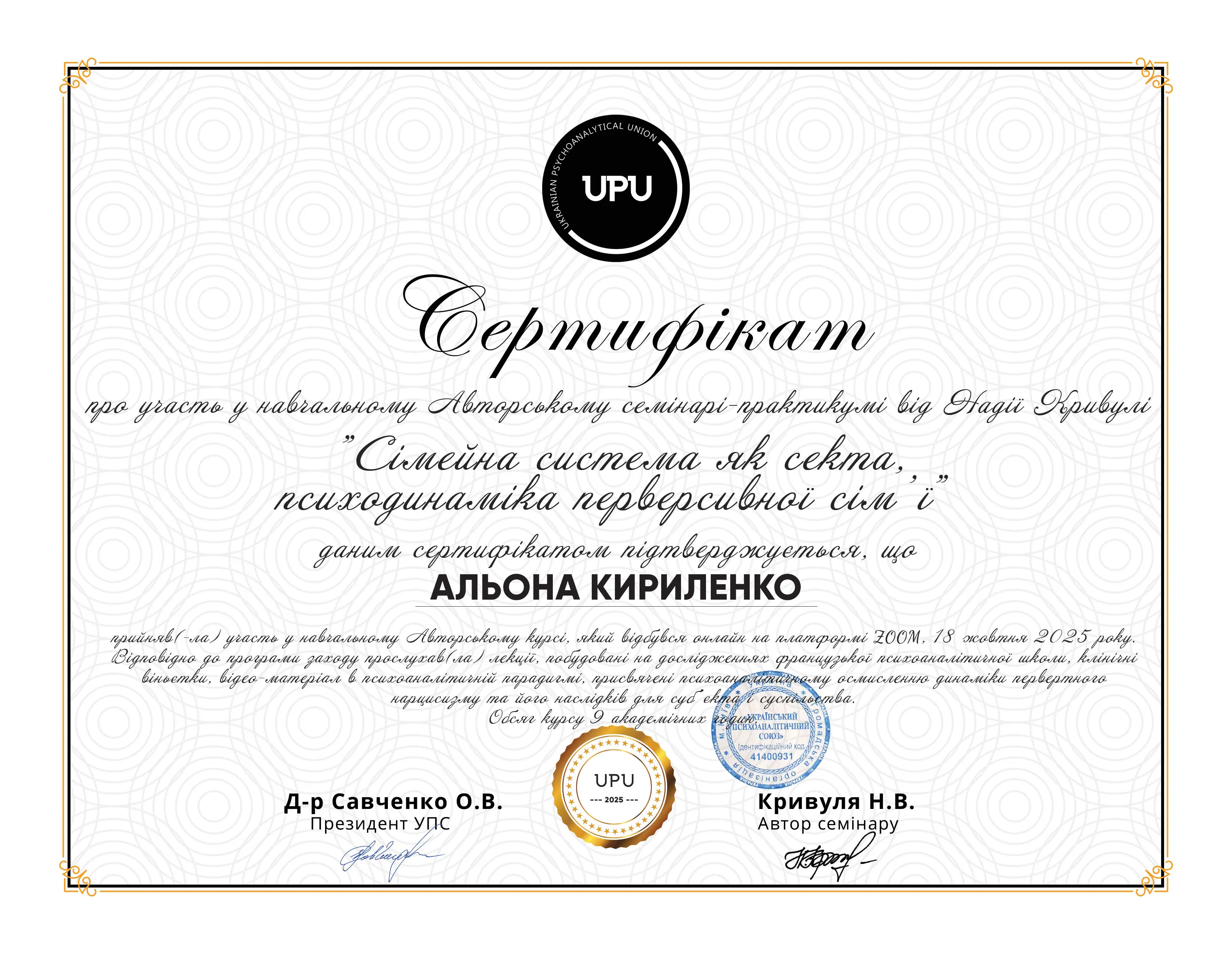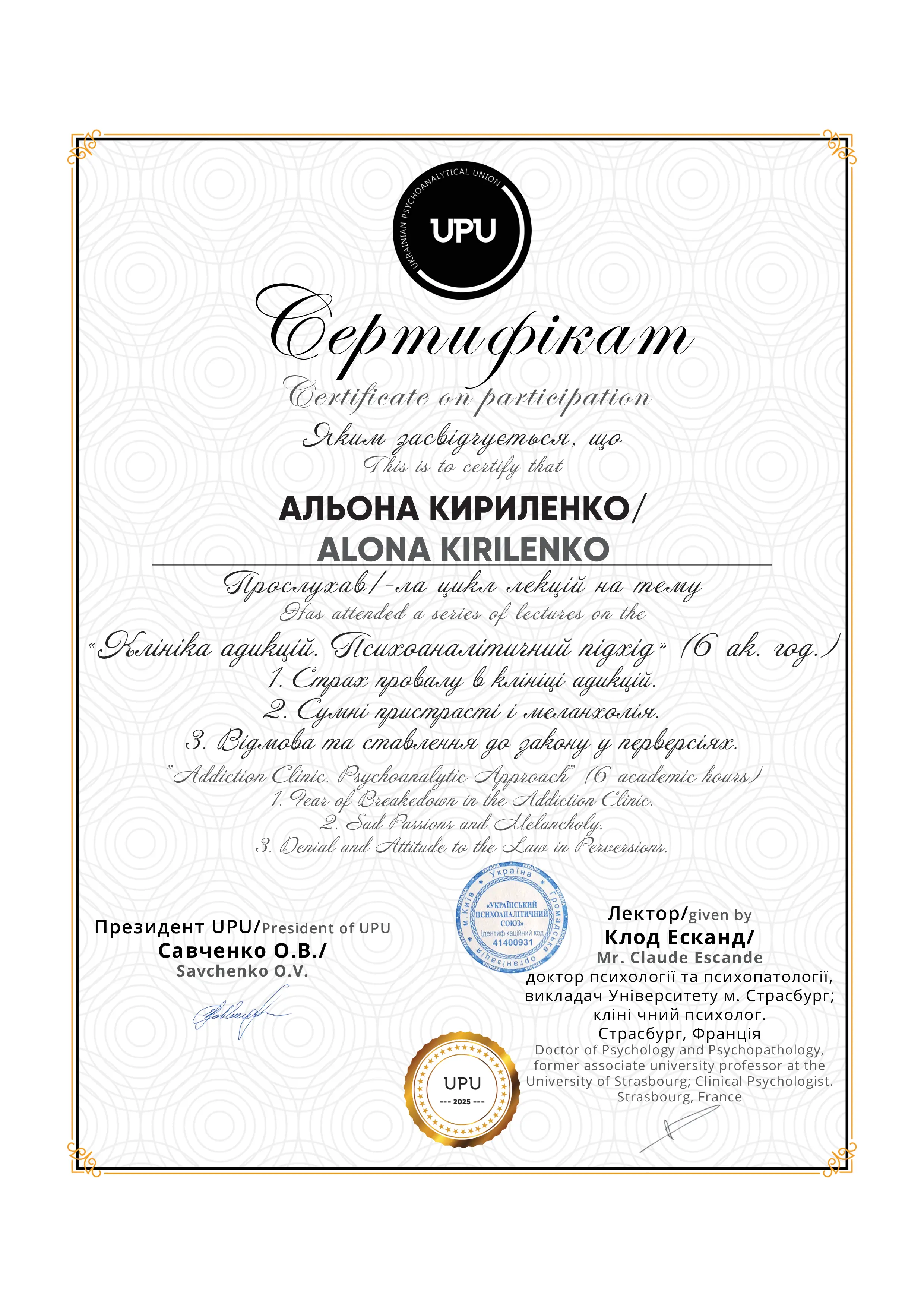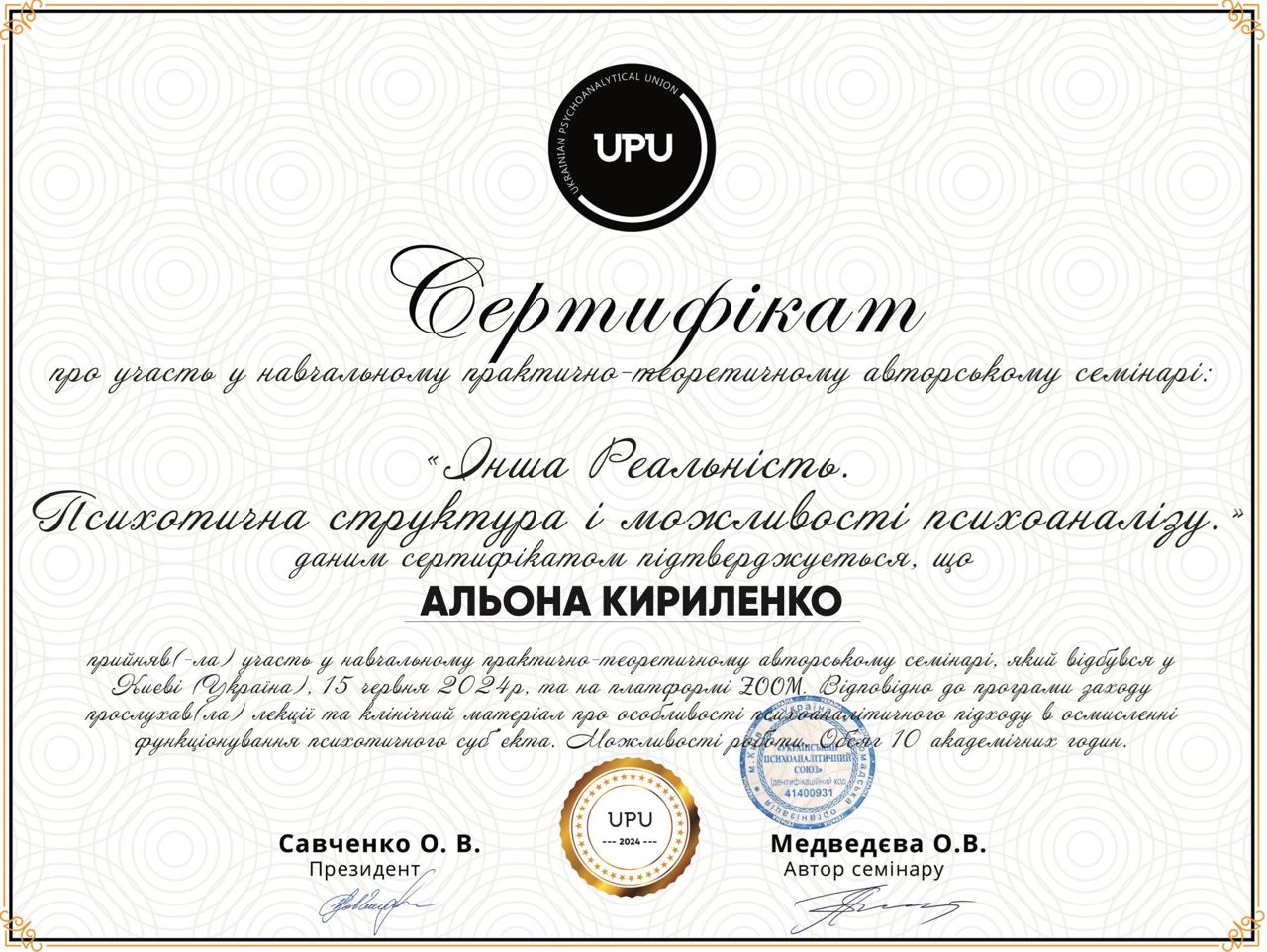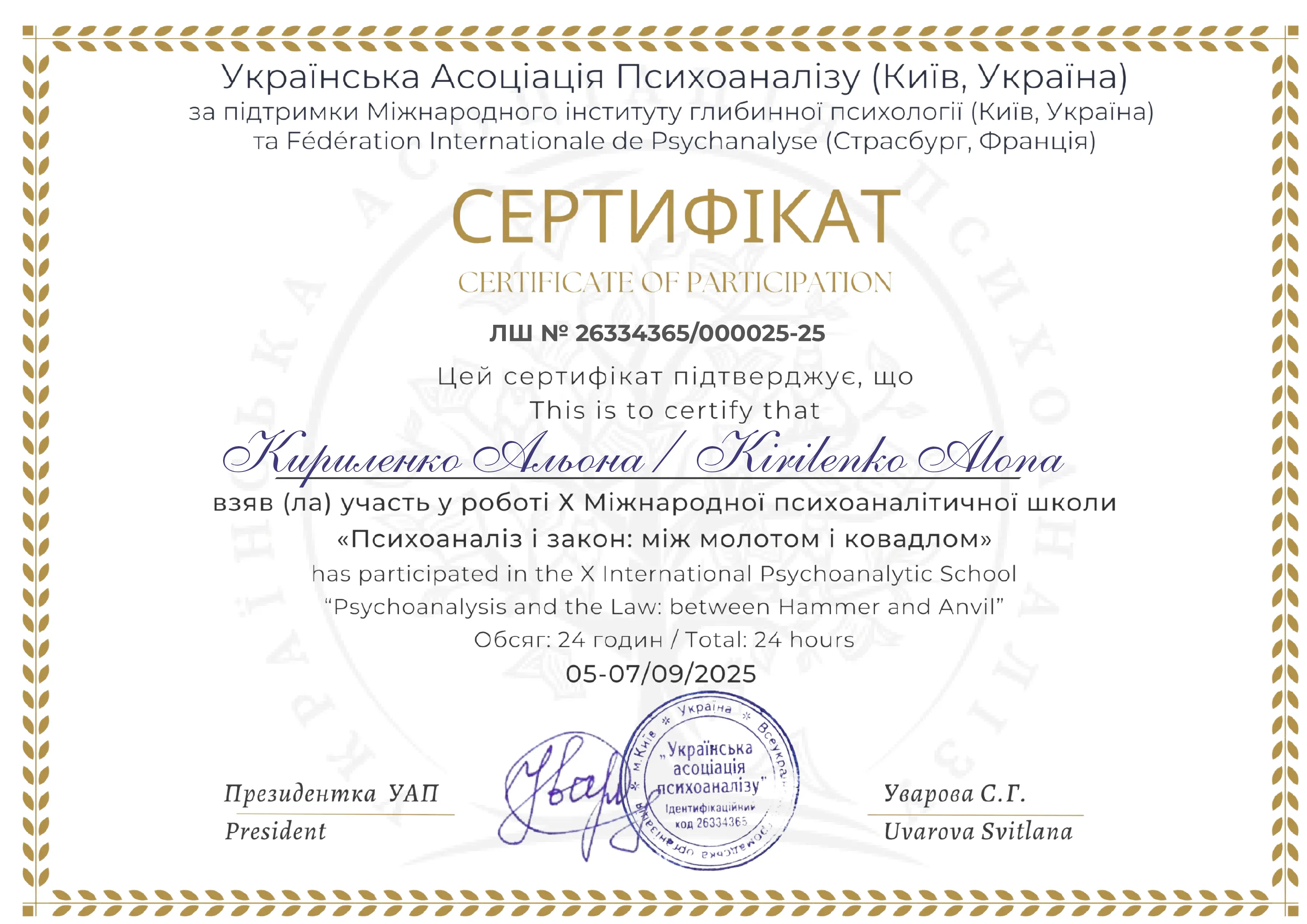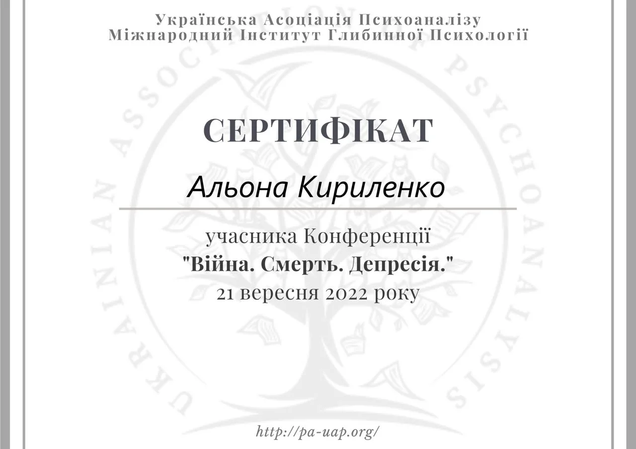 Я являюсь членом Української Асоціації Психоаналізу.